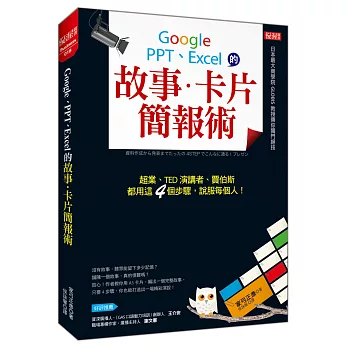 圖解思考開會技術:開會能力,就是「解決問題」的能力,讓個人評價翻倍的全視覺圖解3S會議![]() | 消滅爛演說:說動人心,新手老手都上手的大魚簡報術![]() | Google、PPT、Excel的 故事.卡片簡報術:超業、TED演講者、賈伯斯都用這4個步驟, 說服每個人!![]() | 成就最一目瞭然的簡報:28種各類視覺化設計案例讓你現學現賣(附CD)![]() | ||||