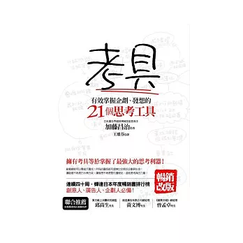 35則打敗死腦筋的創意發想法![]() | 這樣思考,人生就不一樣──早知道該多好的思考整理術![]() | 現學現用!商業圖解思考法![]() | 思考的黃金法則![]() |